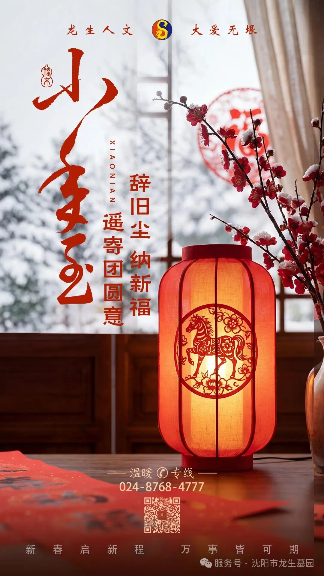 腊月廿三,小年如约。当第一缕晨光穿透冬日的薄雾,当灶糖的甜香开始在街巷中弥漫,一个古老而温暖的仪式,在亿万中国人的家中悄然开启。 小 年 纳 福 小 年 纳 福 小年,是岁暮的温柔序章。这一天,家家洒扫庭除,窗明几净,是为“辞旧”;户户供奉糖瓜,祈愿“上天言好事”——愿所念之人,皆平安;愿所盼之事,皆顺遂,是为“迎新”。这份“辞旧迎新”的心意,是千年来最朴素也最庄重的仪式,其中饱含着对家的眷恋,对根的追溯,对过往的敬意,与对未来的憧憬。 吉 祥 如 意 值此除旧布新、敬天法祖的吉时,我们深知,您心中那份对亲人的思念,也如灶糖的丝线,绵长而深切。若您因路途或事务无法亲至墓园,龙生特备 “辞尘·敬岁”代客祭扫服务,愿为您传递这份岁末的惦念。 沈阳龙生墓园将以恭敬之心、庄重之礼,代为拂拭尘灰,敬奉祭品,将您对亲人的告慰与祈福,准时、完整地安放于这方宁静之地,并以影像细致呈报。让您的心意,成为这个年关最温暖的“在场”。 小年代祭~“辞尘·敬岁” 预定方式 拨打客服电话:15998883366(微信同步)预定 小年将至。年味,在仪式中渐浓;福气,在传承中积淀。我们也为您点亮了下一程温暖的预约——丙午马年“元宵福灯”,现可敬奉。 一盏福灯,一缕心光,是穿越时空的告慰,更是为家人照亮新岁的祈愿。 元宵当日,我们会为您的亲人点亮福灯。那微弱而坚定的光芒,将穿越时空的阻隔,与您心中的思念遥相呼应。在这一刻,无论您身在何方,都能感受到那份来自远方的温暖与牵挂。 预定方式 1、点击上方福灯图片,进入龙生微商城预定。 2、拨打客服电话:15998883366(微信同步)预定 3、到园区祭扫时在售后中心购买 我们承诺,每一份预定都将得到最专业的执行与最贴心的服务,确保您的思念能够准确无误地送达。 人间烟火处,年味渐浓时。 无论您身在何方,愿您与家人: 岁岁皆欢愉,年年常安康。 辞别旧岁,纳得新福。 心有所安,便是团圆。 龙生人文纪念园 以虔诚守护每一份思念的仪式 以温情照亮每一程前行的灯火